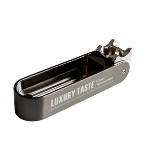 Cenicero Jifeng de aluminio con diseño compacto de una plaza y sacabocados integrado, ideal para fumadores que buscan practicidad y elegancia portátil.