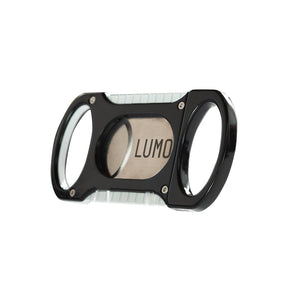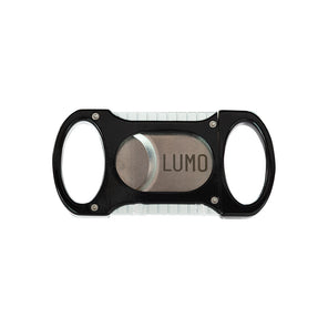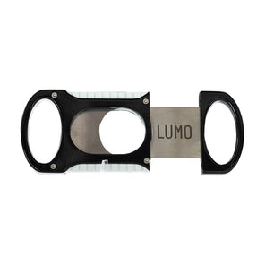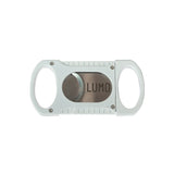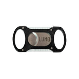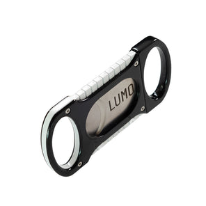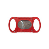 Cortapuro Lumo metálico con doble hoja de acero inoxidable. Diseño ergonómico disponible en rojo, negro y blanco. Corte limpio y preciso para cada habano.