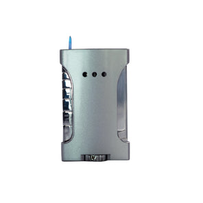 Encendedor Lumo de metal con ventana de combustible y flama única. Ideal para encender puros. Medidas: 6.5 × 4 × 1.6 cm.