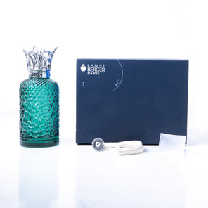 Lámpara Berger elaborada en cristal con diseño Heritage, presentada en un distintivo tono verde. Su estilo facetado y acabado luminoso aportan elegancia y personalidad, convirtiéndola en una pieza decorativa ideal para realzar cualquier ambiente con sofisticación.