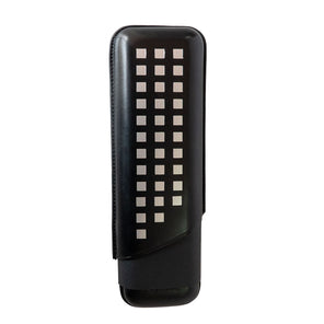 Purera Cohiba Behike en piel negra con detalles dorados, ajustable para 2 puros. Un accesorio exclusivo que protege y realza la experiencia de cada vitola.